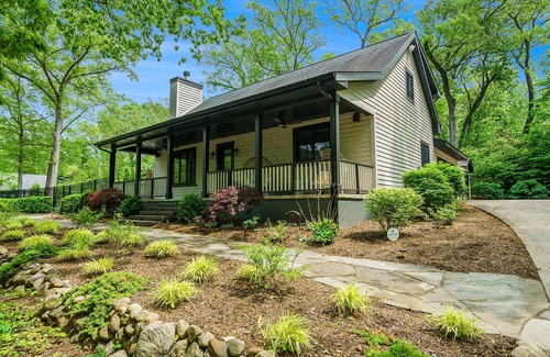 Inside, the bliss continues in the bright and cozy living area adorned with stylish furnishings, a smart TV, and a fireplace to snuggle up to during blissful downtime. A chic, well-appointed kitchen hosts everything you need to cook up tasty meals and snacks. Whip up something delicious and gather on the screened porch to gaze at the tranquil scenery and wildlife. As the evening winds down, play Ping-Pong or arcade games on the lower level, before gathering around the firepit for s’mores under the star-speckled sky.
