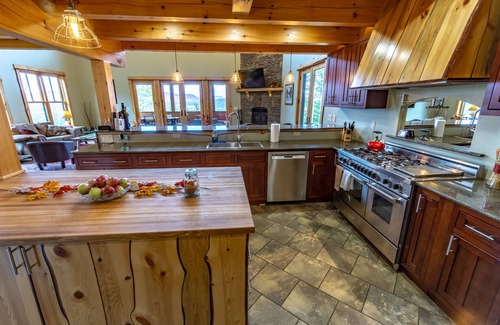 Beautiful Mountain home with high peak views, a chef's kitchen, hot tub, and an over-the-top outdoor pizza oven! All on a private, peaceful and beautifully maintained property. 2 miles to Gore Mountain!