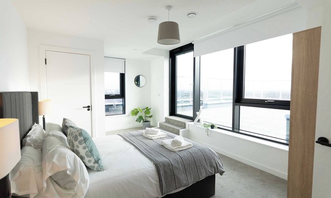 This modern 2 bedroom penthouse apartment is set on the 15th floor within a contemporary development in the Old Trafford area of Manchester, just 15 minutes walk from Old Trafford stadium. The stylish interior has been finished to a high standard, with all the amenities you need for a comfortable stay in the city, including free parking. You will be within walking distance of several popular restaurants, shops, and bus or tram routes - the ideal base to explore Manchester.