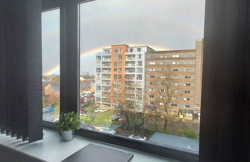 Our stunning apartment is tailored for families, friends, short-term relocators and first-timers in Manchester. With space for up to 3 adults or 2 adults and 2 kids, our place is perfectly situated near stores, a pharmacy, and captivating tourist hotspots.
