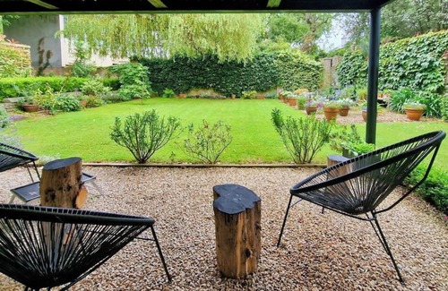 >Beautiful Gardens: French doors open to meticulously maintained communal gardens.