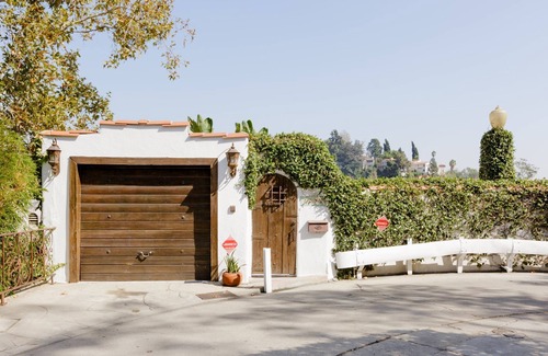 The spacious loft like living room and dinning room are surrounded by windows and views of the hillside and greenery. Large bathroom with terracotta floors and a large cooks kitchen with stainless appliances. French doors throughout with plenty of light and 3 private patios to enjoy a glass of wine and enjoy the views. Perfect for enjoying the evening with a glass of wine. Truly a hidden gem that sits behind gates and yet walking distance to all of the hottest spots in LA. This house has never been on the rental market and has recently been renovated to its original charm.Stay in the heart of the Hollywood Hills in this private secluded Villa duplex which sits behind gates and extremely private. Just a stone's throw away from the Hollywood Bowl, Hollywood Walk of Fame, Chinese and Dolby theaters, The magic Castle, and yet you'll feel a world away. This quiet historic neighborhood offers a beautiful walk through history. Once the neighborhood of Marilyn Monroe, Frank Sinatra, Richard Gere , among many many others. Mountain views, the Florentine Bell Tower, Spanish homes carved into the hillside makes this neighborhood a true gem for history and authenticity into something replicated out of southern Italy. This Designer villa was just renovated to the ten's with all of the bells and whistles making it a truly authentic experience for your stay. Situated at the end of a cul-de-sac and extreme secluded away from the hustle and bustle, yet walking distance to all of the hottest restaurants and night clubs Hollywood has to offer.