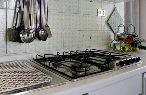 The open kitchen is equipped with a dishwasher and four gas rings. The bathroom has a shower, bidet, and toilet. The house features gas heating (extra cost), air conditioning (extra cost), a terrace with furniture, a barbecue, and two deck chairs. You can enjoy a distant view of the lake from the property. Complimentary WiFi internet access is provided, and there is reserved, fenced parking available at the house.