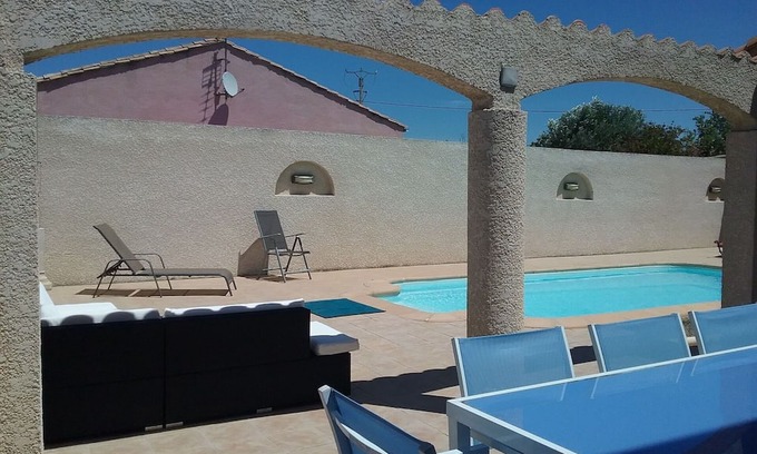 Stunning private villa for 8 people with A/C, WIFI, private pool, TV, patio and parking is located in Argeliers. Stunning private villa for 8 people with A/C, WIFI, private pool, TV, patio and parking provides accommodation, featuring Private Pool, Security/Safety, Fireplace/Heating, among other amenities. This House features Private Pool, Security/Safety, Fireplace/Heating, to make your stay a comfortable one.