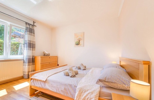 The property, Single-family house "Zgodić", is a two-story vacation rental situated above Lovran, in the hamlet of Liganj, approximately 4 km from the center of Lovran and 8 km from the center of Opatija. It boasts a serene, sunny, and elevated position, nestled in a cul-de-sac that is 4.5 km from the sea. The private property spans 510 m2 and is fenced, featuring a garden adorned with flowers. Additionally, it offers a swimming pool (6 x 3 m, depth 140 cm) with a salt-electrolysis pool-cleaning system, available seasonally from May 1 to October 15.