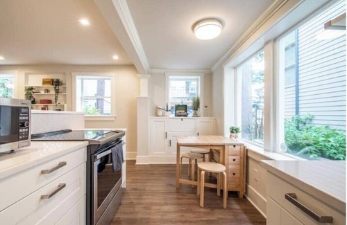 Experience the charm of this 2018 revival of a 1907 Dutch Colonial in Queen Anne, perfect for families with kids and larger groups seeking privacy. Nestled on a quiet street with Puget Sound views, it boasts two new kitchens, cozy nooks, and thoughtful touches for any stay. Enjoy the formal dining room, pocket doors, and stone-counter kitchens with stainless appliances. The lower-level suite, with its own entrance, offers added flexibility. Minutes from the Space Needle and cruise terminal!
