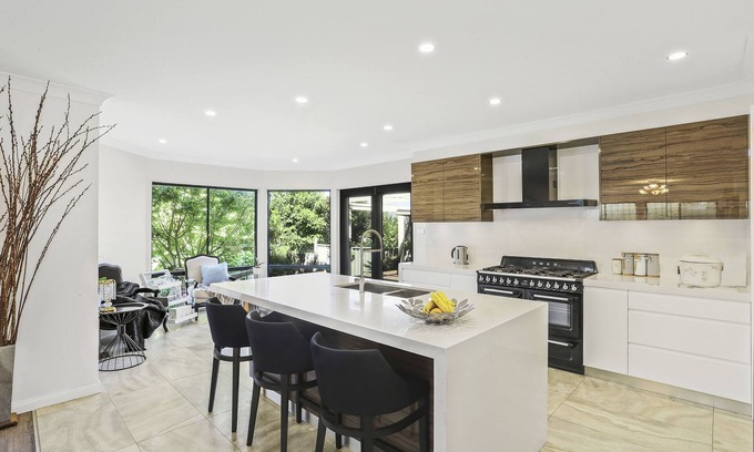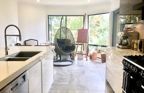 Welcome to STUNNING RENOVATED HOME CLOSE TO SYDNEY, a home with designer style interiors and a countryside inspired herb garden with a beautiful Japanese Maple tree. Cool contemporary home, airy open plan, clean and stylish, perfect for a relaxing stay for the whole family or corporate group. Cook in the designer kitchen with Smeg and Miele stainless steel appliances.