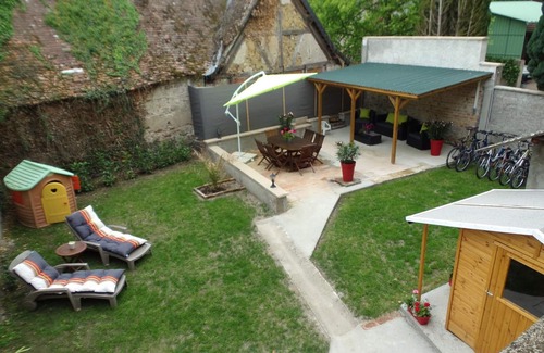 Small interior courtyard with lawn, covered terrace with a relaxation area featuring a sofa and resin armchairs. Extra bed available. Electric heating. All shops on site. Moulins 30 km. Le Pal amusement park 6 km.