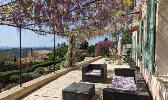 Stunning sea views within walking distance of the village is located in Tourrettes-sur-Loup. Stunning sea views within walking distance of the village provides accommodation, featuring Private Pool, Sports/Activities, Bedding/Linens, among other amenities. This Villa features Private Pool, Sports/Activities, Bedding/Linens, to make your stay a comfortable one.