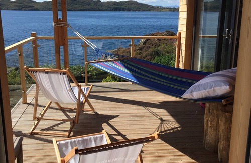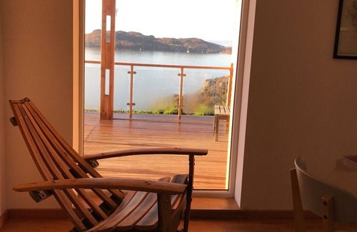 Shore Cottage is a newly renovated house, completed in 2016 to a very high standard. The well-laid out open plan kitchen, dining and sitting rooms provide uninterrupted views of Loch Gairloch, with a covered deck which allows you to enjoy the great outdoors whatever the weather. In the living room there is also a cosy log-burning stove. Downstairs, an additional TV room allows relaxing evenings for all – no disagreements about what to watch! In addition, there are a comfortable twin bedroom and separate large shower room downstairs. Upstairs, there are 2 peaceful king size bedrooms with beautiful views over Loch Gairloch, and a separate family bathroom.