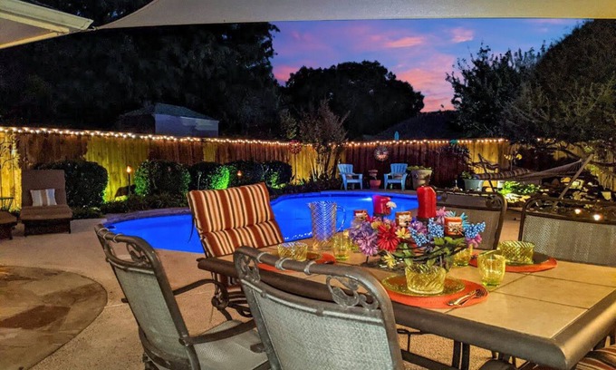 Whether you're looking for a wonderful staycation or the perfect getaway destination, you will absolutely love private times with friends and family, relaxing by the pool and Koi Fishpond in our secluded backyard Oasis. Beautiful evening lighting and plenty of places to sit, barbecue, swim and just enjoy!