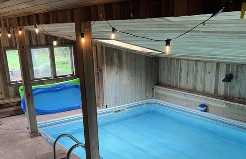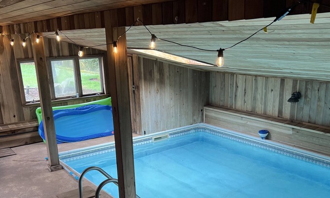 Relax in the fenced-in backyard and patio area, or take a refreshing dip in the heated indoor pool, complete with a sauna and a changing area for your convenience. The sunroom off the pool area offers extra sleeping space, and there's even a loft for added comfort and relaxation.
