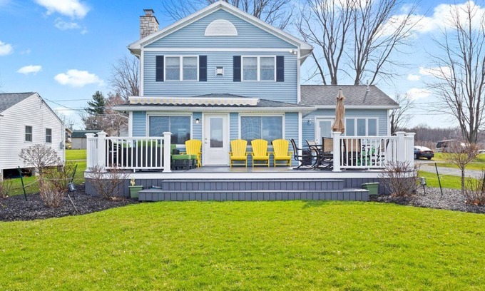 **BLISS ON THE BAY** Whether planning a family vacation or romantic getaway, relax and revive yourself in this stunning, private Sodus Bay waterfront home! Featuring large private yard in a quiet neighborhood, walking distance to local favorite restaurants! Spend your days splashing in the water, with the convenience of your own private dock! Lots of fun to be had by all; close to Chimney Bluffs State Park, Thorpe Vineyards, Sodus Point Beach, Sodus Bay Heights Golf Club and Fowler's Marina (boat rental avail).