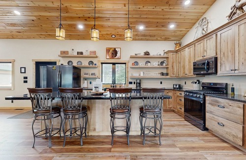 Stunning & spacious house w/private hot tub, secluded, W/D is located in Deadwood. Stunning & spacious house w/private hot tub, secluded, W/D provides accommodation, featuring Hot Tub, Kitchen, Laundry, among other amenities. This House features Hot Tub, Kitchen, Laundry, to make your stay a comfortable one.