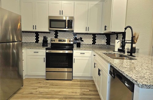 2 Fully Stocked Kitchens: Each duplex has its own kitchen. Both kitchens are fully equipped with all appliances and essentials needed to cater to your group. This option is perfect for the holiday cooking and preparations, as your group can independently cook, prepare and combine meals together or separately. (see pictures for more information)