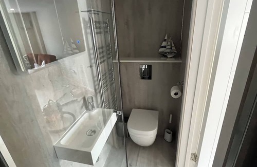 Amazing private garden with palms and secluded hot tub. 4 minutes walk from the River Hamble and Warsash Sailing Club. Brand new Studio with King size bed, fully equipped small kitchen, stunning shower room, sofa area. Beautiful riverside walks, lovely eateries and 3 walkable pubs.