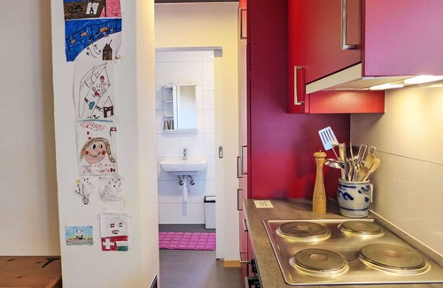 The property is a 3-room apartment spanning 45 square meters across two levels, offering a comfortable and cozy ambiance. On the ground floor, you'll find a spacious kitchen/living room equipped with 4 hot plates, an oven, dishwasher, toaster, kettle, electric coffee machine, raclette grill, and a fondue set (cheese), complete with a dining nook and radio. This level also features a shower/WC and underfloor heating for added comfort. The upper floor boasts a large living/sleeping room with a double bed, digital TV, flat screen, and DVD player, along with access to a balcony. Additionally, there's a 6-square-meter children's room with two bunk beds (90 cm, length 200 cm).