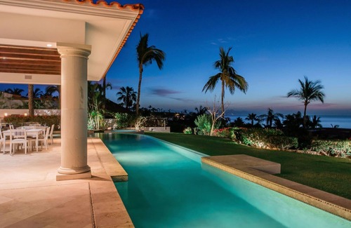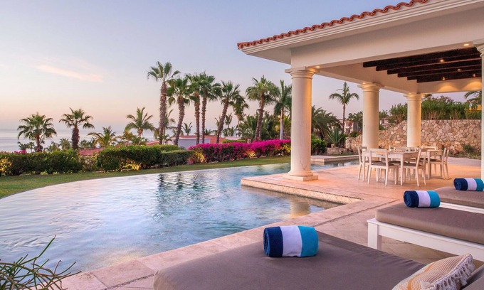 For travelers who can't wait to enjoy a luxurious getaway to Los Cabos and long to embrace the resort-inspired amenities and extras to match, booking a stay in Nirvana is sure to elevate the experience to the next level of excellence. This welcoming and undeniably stunning 5-bed + den, 6-bath home away from home can easily accommodate up to 16 guests at a time. This makes it the ideal place to reserve your stay whether you're headed to Los Cabos with a group of friends or are looking forward to spending quality time with family. Nirvana is a sprawling villa that provides the ultimate in comfort and style while pairing it impeccable with access to fun.
