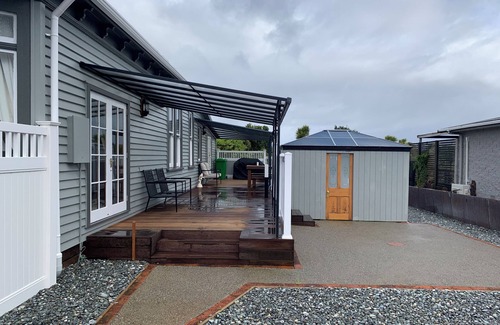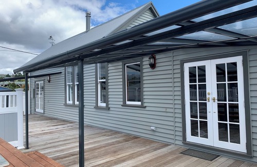 Nestled in the heart of the Charleston township, minutes walk to the picturesque Constance Bay, Charleston Tavern and Underworld Adventures HQ. Our charmingly restoredw Villa provides all the modern amenities whilst embracing the features of a character home. The extensive deck with verandas, BBQ and outdoor seating provide a relaxing outdoor space. The fenced back yard encompasses an outdoor bath area with twin cast iron baths. The spacious 3 bedrooms are furnished with King Bed + Smart TV and coffee table & chairs and feature fire (decorative only) in the Master Bedroom, Super King bed in the 2nd Bedroom, Single bed + Single bunk beds in the 3rd Bedroom. All bedrooms have spare sheets, blankets and oil heaters. There is a wood burner and heat-pump in the Living Room. The Kitchen is fully equipped and appliances include dishwasher, upright fridge freezer with icemaker, induction cooktop, twin wall mounted ovens and microwave. Children are welcome although we do not have a cot or kiddi locks on the laundry/kitchen cupboards/drawers for littlies. Note the property has external security cameras.