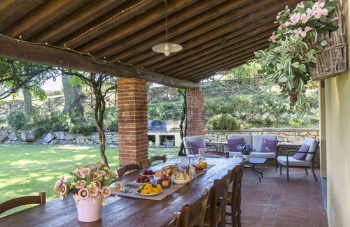 Typical Tuscan estate, absolutely secluded location, panoramic view, 5000m² garden, large pool, jacuzzi, air conditioning, table tennis, barbecue area