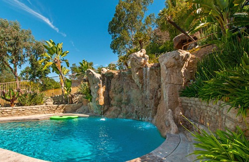 **The calming, tropical aura of San Diego is found in this spacious four-bedroom, four bath fully furnished Corporate Rental and Vacation Home. Enjoying a half-acre of land in a quiet neighborhood, it has the feel of a resort with a multitude of activities for clients young and old.