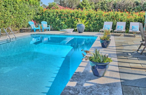 Does the StunningModernApt StepsToBeach LargePool Central have a swimming pool?