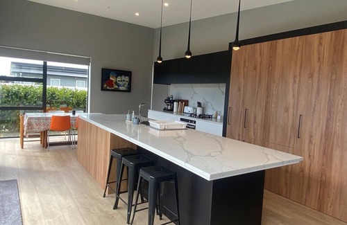 This stylish, modern, designer 4-bedroom home is beautifully appointed and makes for easy living. Stunning, open plan living and dining with large modern entertainer's kitchen and butler's pantry. Living area opens out onto an expansive deck & is a real suntrap. 4 comfortable, queen bedrooms. 2.5 brand new, modern bathrooms (one is ensuite). Double garage with internal access. Laundry including separate washer and dryer. Private and in a quiet neighbourhood. In a new subdivision and handy to New World supermarket, many retirement homes and the Waikanae outdoor pool. Transmission Gully links Waikanae to central Wellington in 40 mins. Regular trains run to the Capital. Waikanae Beach is a short drive away.