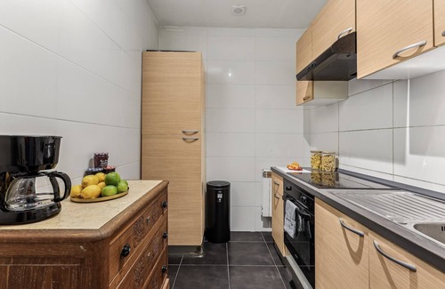 The fully equipped kitchen has a sink, toaster, electric tea kettle, refrigerator, stove, drip coffee machine, and more. Full sets of dishes, cutlery and crockery are provided along with pots, pans and kitchen utensils. The flat comes with a clothes washing machine and drying rack. An iron and ironing board, vacuum, mop and broom are available.