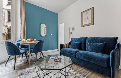 Enjoy staying in the heart of Paris’s Montorgueil Quarter area with this stylish 1-bedroom, 35 square meters apartment located on the 1st floor of a secure residential building without an elevator. Self check-in starting from 3:00PM by picking up keys at a nearby shop. Wi-Fi is available, great for both work and leisure. Refundable damage deposit is required, in full accordance with platform's policies.