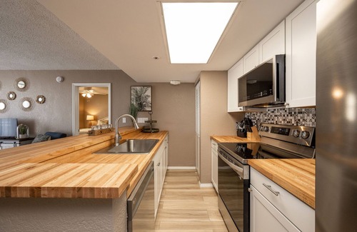 Based on the information received from our partner, the Stylish 2/2 pool/gym/tennis/hot tub has not specified they are wheelchair accessible. Likewise, there is not an elevator specified as being available at the property. Specific accessibility details may be addressed in the property details section of this page.