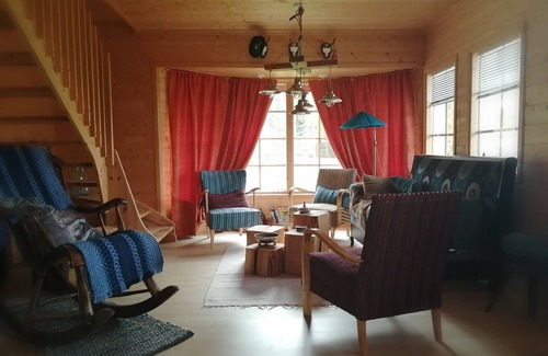 Finished in 2015, this pine wood cottage does not offer only all the necessary modern amenities, such as a modern kitchen, a sauna and a beautiful bathroom.