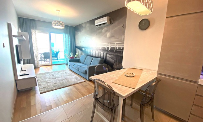 Brand new apartment 10 minutes walk away from sandy beach (Becici). Fully equipped, quality furniture and nice balcony with sea views - you don’t need more to enjoy your seaside holiday. Supermarkets and restaurants are easy walking distance.