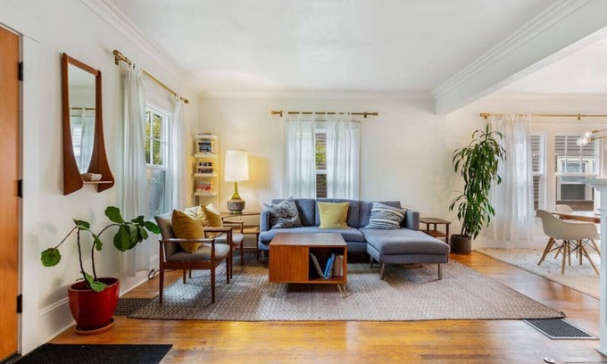 This conveniently located and oh-so-stylish duplex in Portland's vibrant Hawthorne & Division districts is the perfect place to stay and experience the city. With a mix of mid-century modern and contemporary touches, it offers a fully equipped kitchen, spacious living room, office space and the comforts of home just a 15 min drive away from downtown. Get ready to enjoy all of the attractions the city has to offer in this dreamy little escape.