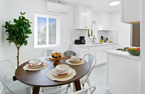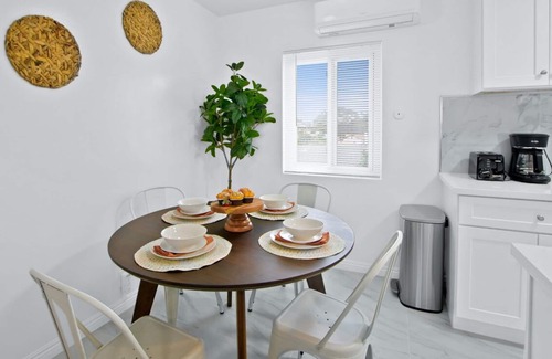 Let the sunlight stream in and kick off your day in this stylish 2-bedroom upstairs apartment in the San Gabriel Valley. Brew your favorite coffee, relax in the sunny dining nook, then explore Alhambra Place, Valley Indoor Swap Meet, or catch a show in Downtown LA. Back home, cozy up with a movie or rest easy in your king or queen bed. With a full kitchen, fast WiFi, and split AC in every room, comfort meets convenience. Book your stay today!