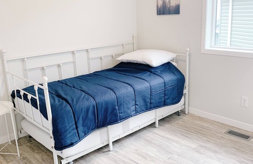 🏡Welcome to our stylish retreat in South Cochrane, ideal for group trips and close to the stunning Rocky Mountains. Conveniently located, this spacious abode offers both comfort and accessibility. The master bedroom features a practical ensuite bathroom. In the well-equipped kitchen, cooking for your group is a breeze, and the in-unit laundry ensures convenience throughout your stay. 2 off-street parking spots as well. 2 queen beds, a pull out sofa and a trundle makes for many sleeping options.