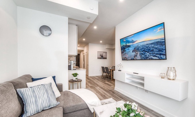 Unwind in the stylish one-bedroom apt on King Street, the heart of Kitchener/minutes away from uptown Waterloo. Central City is full of award-winning restaurants, bars, shops, historic landmarks, and attractions. Adventure through the region easily from this prime location. Once you are ready to relax, retreat to the comfy apt.