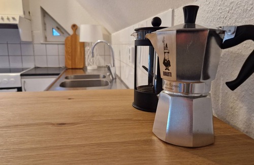 Enjoy cooking in our fully equipped kitchen. It includes modern amenities such as a dishwasher and a coffee maker. For coffee enthusiasts, there is a coffee bar with both a French press and a moka pot, allowing you to start each morning with a perfectly brewed cup of coffee.