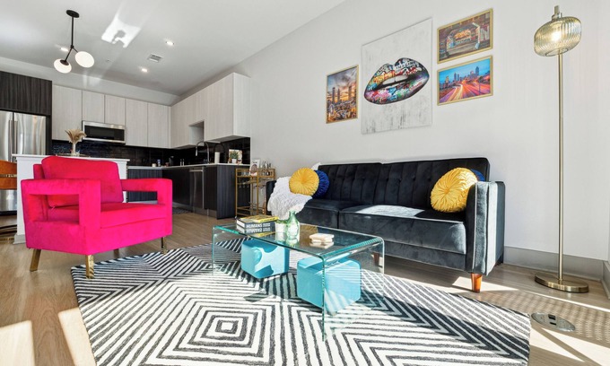 Stay in the heart of Atlanta at this vibrant, art-inspired getaway with everything you need at your door and inside the apartment! Perfect for couples, families, and groups, this modern retreat offers a king-size bed, private balcony, and fun amenities like games, a swimming pool, lounges, and tons of attractions in walking distance! Explore the city’s top spots nearby, and make your stay unforgettable with our curated celebration, itinerary, and family packages!