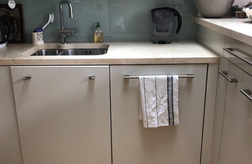 On the ground floor is the huge master bedroom (king sized bed) and en-suite bath room with jacuzzi bath. You can access the garden through the floor to ceiling patio doors - which can be pushed back fully. Comfortable garden furniture is available to relax and enjoy the garden. The washer/dryer and a large fridge freezer are on this floor.