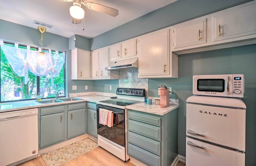 Discover the best of Durham from the comfort of this chic 2-bedroom, 2.5-bathroom townhome! Tucked in a peaceful neighborhood between the area’s lush landscape and the action of downtown, this gem boasts easy access to all the hot spots. Admire the flowers at the Sarah P. Duke Gardens, explore the American Tobacco Campus, or catch a basketball game at Duke University. Return to this vacation rental for a home-cooked meal, then cozy up on the sofa for movie night on the Smart TV.