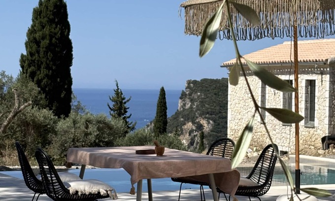 Stylish hideaway - pool, view, close to the beach is located in Lakones. Stylish hideaway - pool, view, close to the beach provides accommodation, featuring Air Conditioner, Security/Safety, Wellness Facilities, among other amenities. This Villa features Air Conditioner, Security/Safety, Wellness Facilities, to make your stay a comfortable one.