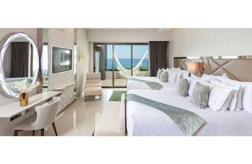 Experience the vibrant oasis of unwavering pampering in Mexico’s most classy beach destination renowned for its expansive desert scenery and majestic mountains. Enjoy every luxurious indulgence in a 3 bedroom oceanfront suite overlooking the beauty of the turquoise sea; with private jacuzzi, glistening heated swimming pools, rooftop infinity pool, world-class gastronomy, wellness activities and outstanding service!