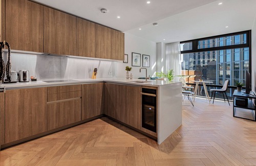 Stay in the heart of London’s financial district at MySquare’s Liverpool Street Apartments, steps from Liverpool Street Station and a short stroll to Brick Lane and the Sky Garden. Featuring wood‑floored living areas, a carpeted bedroom, and a fully appointed kitchen, each apartment includes washer/dryer, free Wi‑Fi, premium bedding, and flat‑screen TV. With concierge service and regular housekeeping, it’s ideal for business travellers or savvy urban explorers.
