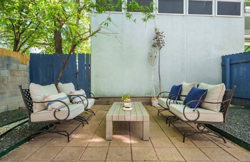 This spacious open floor plan house is the perfect spot to hang your hat in Austin. Thoughtfully curated with West Texas artifacts, the vibe has style, style and more style. The best part is that it is located in Central Austin and is a short uber to downtown and all of Austin's best attractions. Walk to grab breakfast or coffee across the street or grab lunch at Little Deli. The neighborhood wine bar Violet Crown is just a few blocks away. Or sip wine here on one of the four outdoor patios!