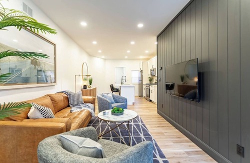 The home is fully equipped with smart TVs, fast Wi-Fi, in-home laundry, and a fully stocked kitchen. You’ll also enjoy free off-street parking—a rare find in this walkable part of the city. Whether you're visiting for business, sightseeing, or a game day, this location is unbeatable.