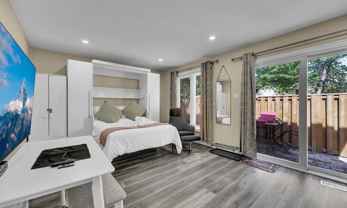 This suite is located in a quiet, family-friendly neighborhood, with everything you need just around the corner. Enjoy the convenience of free parking, the peace of your own private entrance, and the ease of being close to major routes, transit, and shopping.