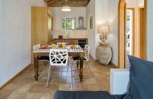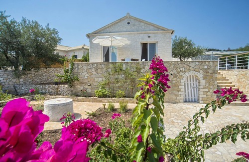 A large garden area at different levels and spacious terraces with barbecue area and pool offer wonderful opportunities for relaxation and outside dining. There are views through the surrounding olive trees to the sea and the Greek mainland.