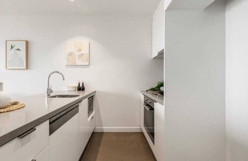 This 2-bedroom, 2-bathroom apartment caters for couples and families. Undercover parking (maximum height is 2.1m) is available in the building.