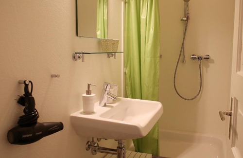 The house from the Art Nouveau period was restored and renovated in 2009 and has been well maintained ever since. It offers guests a 1.5-room holiday flat (42 m2) with a spacious double room (2 single beds 90x200), a kitchen-cum-living room, a bathroom with shower/sink and a separate WC with washbasin. The flat is on the mezzanine floor with a view of the greenery and is very stylish, cosy and furnished to a high standard. The double room (26m2) can also accommodate 3 people at an extra charge.