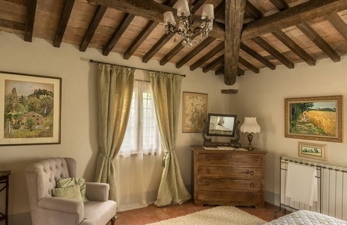 Set in a quiet little valley, not too far from a seldom used narrow country road, La Padronale sits halfway up the hillside facing out over beautiful gardens and private pool surrounded by beautiful breathtaking views. It is a treat and unlike most other traditional Tuscan or Umbria farmhouses and a truly magical place to relax.
